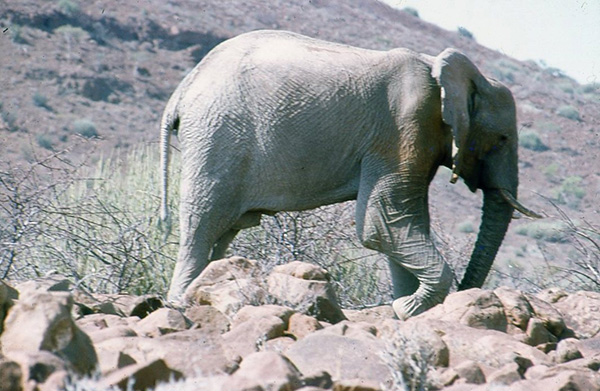 Desert-dwelling elephants, Juriesdraai, Damaraland, Namibia October 1980
