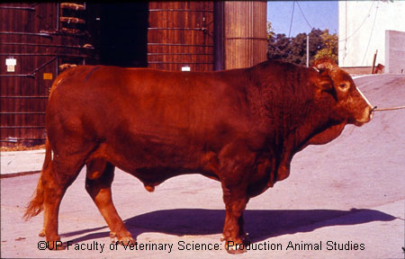 ADDITIONAL INFORMATION: Dual purpose cattle with smooth coated cover, strong hooves, good pigmentation, milk production, high dressing percentage, good average daily gain, marbling of meat and good libido with bulls.