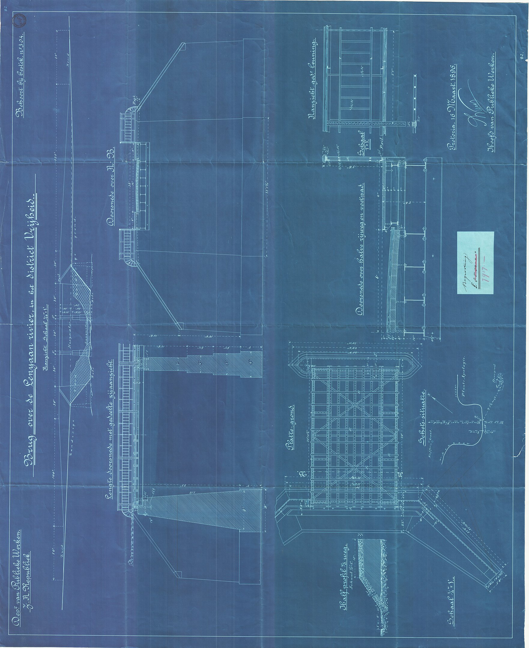 Digitised version of National Archive file S.2/169. Drawing of the bridge across the Likkewaan River, Vryheid, signed by "S.W. Wierda, Hoofd Publieke Werken"