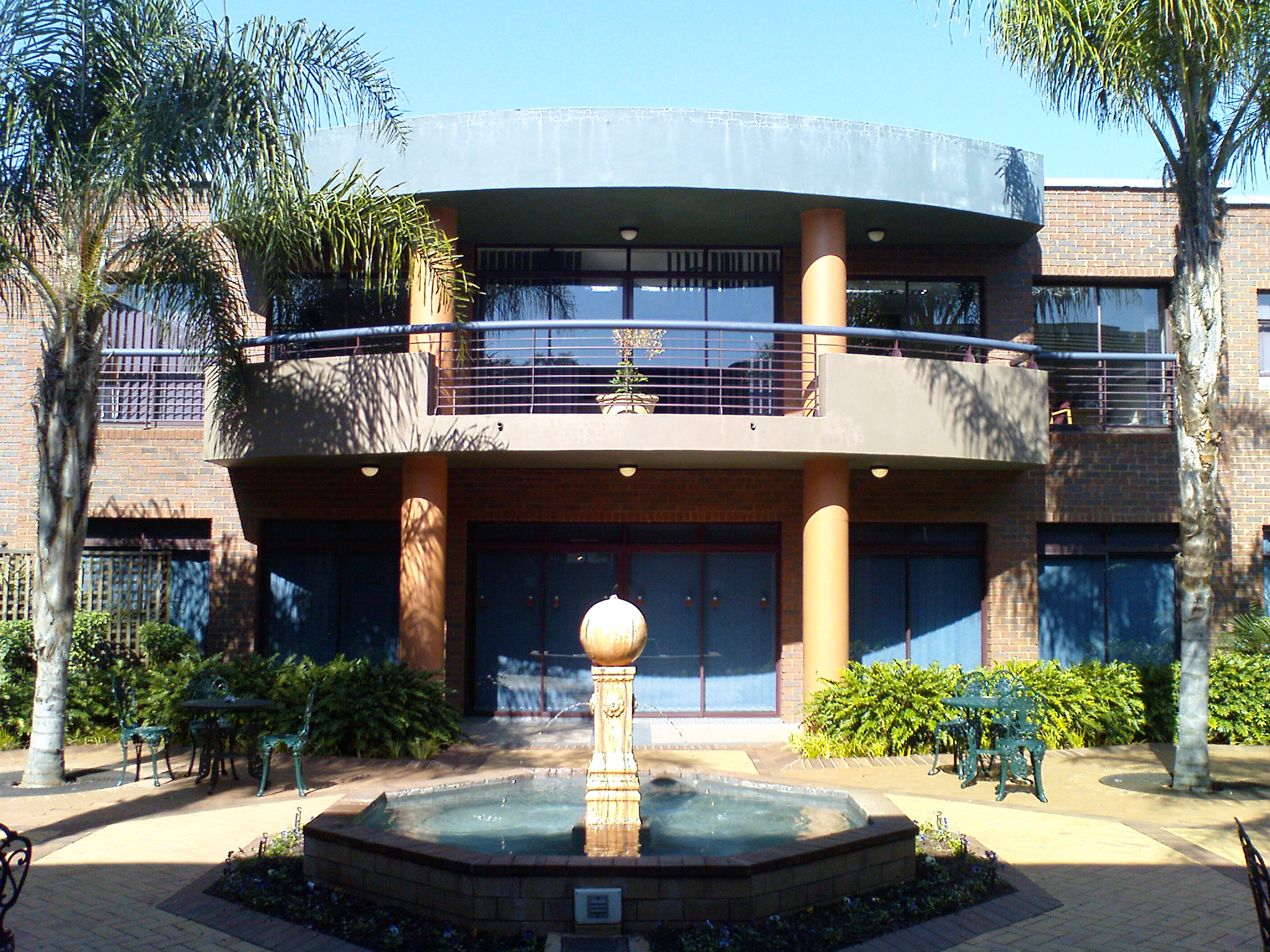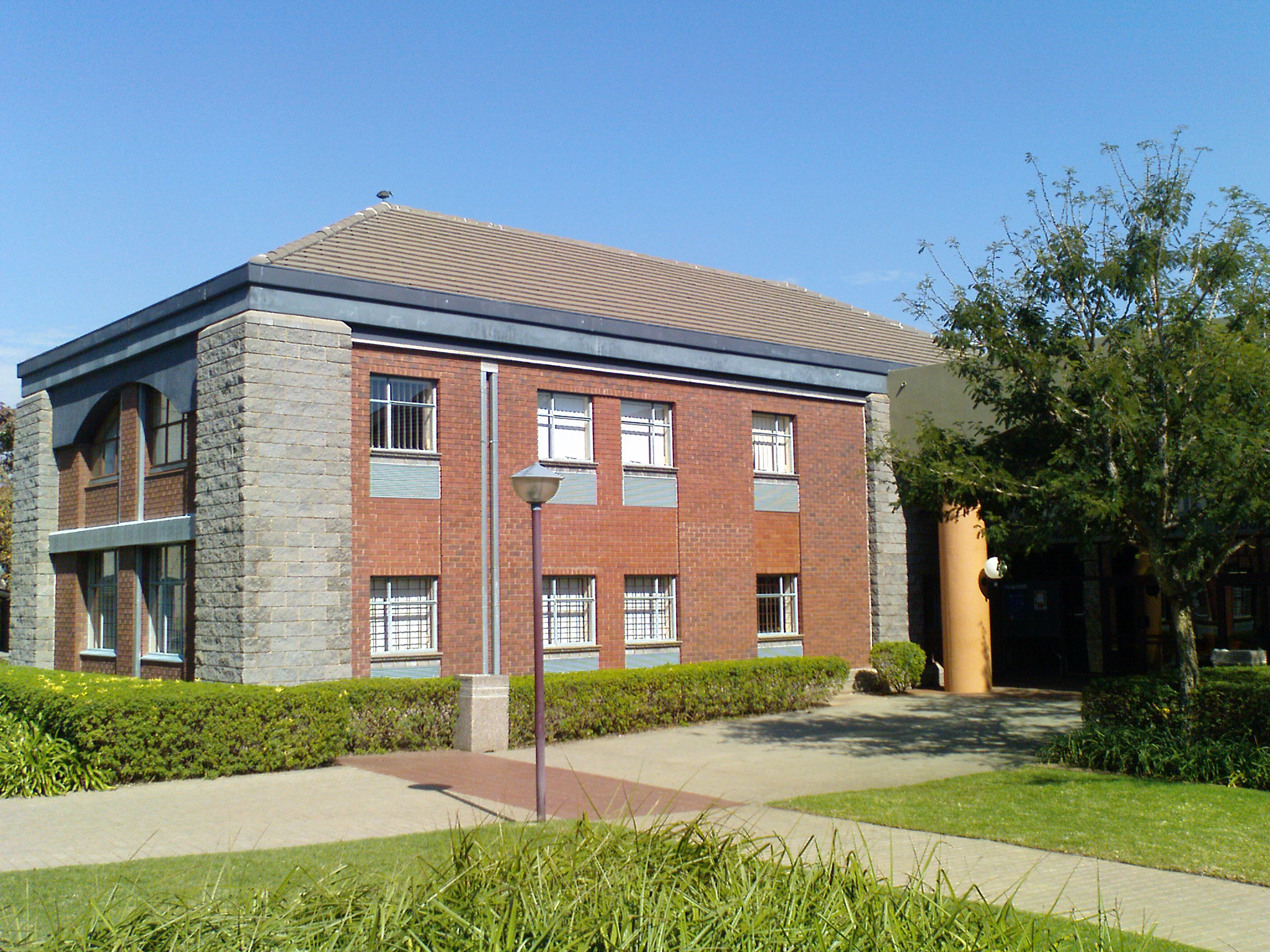 This building is similar in design to the Economics and Management Sciences building and features elements of Post-Romanesque style, as reflected by its domed entrance and arches. The walls are a mixture of polystyrene and concrete to minimise echoes and improve acoustics, making it a popular conference and seminar venue. The complex was designed by architect Willie Oosthuizen of the firm VDO Architects. The official inauguration took place in March 1997 and was presided over by Prof S M E Bengu, the then Minister of Education. The centre comprises offices, lecture halls, work rooms and a computer laboratory and houses the campus enterprises Continuing Education at UP (CE@UP) as well as Business Enterprises at UP (BE@UP).