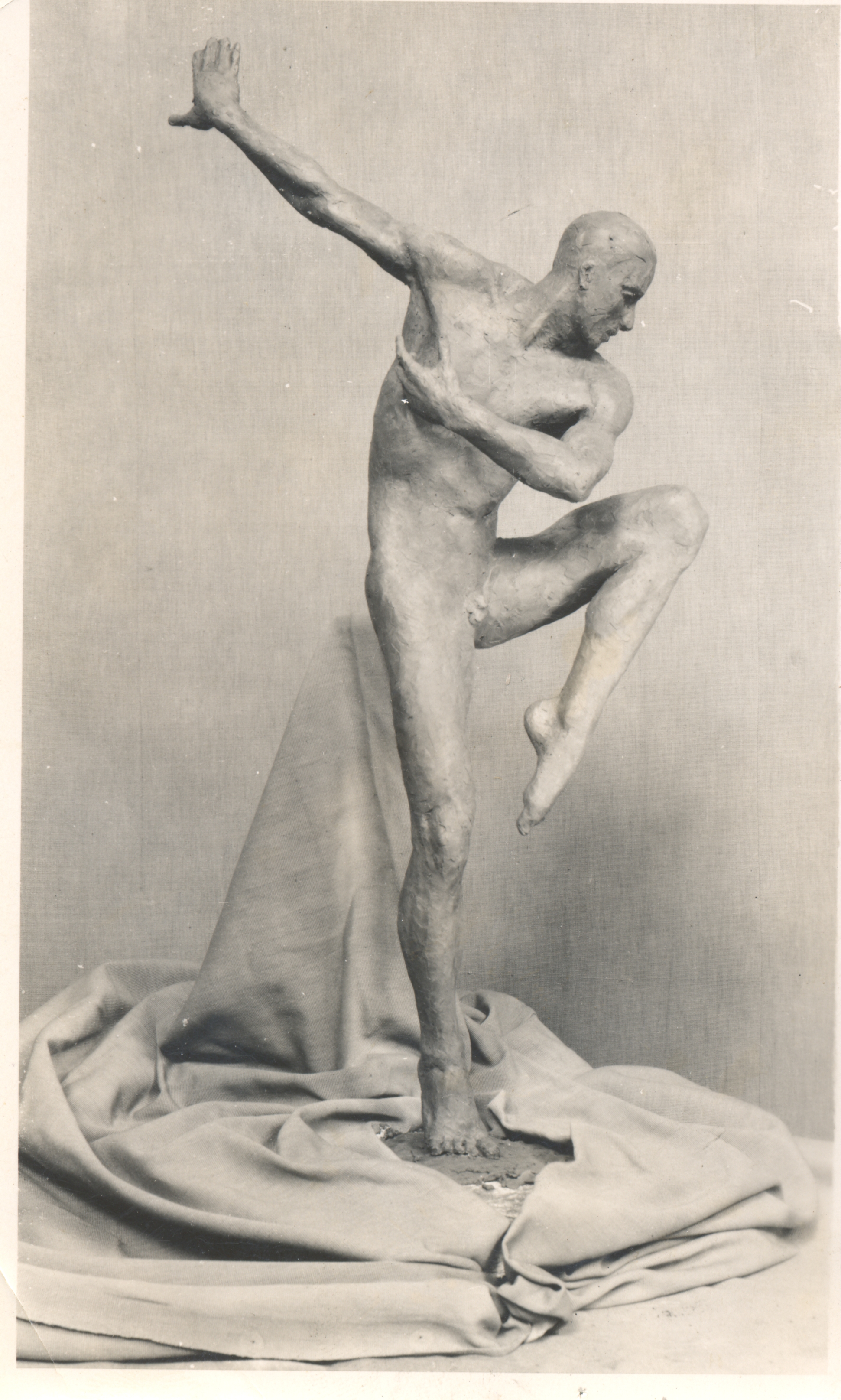 The male ballet dancer, at a point of turning or possibly performing a pirouette has presumably never been cast in bronze as the original clay figure was never brought to South Africa from France.