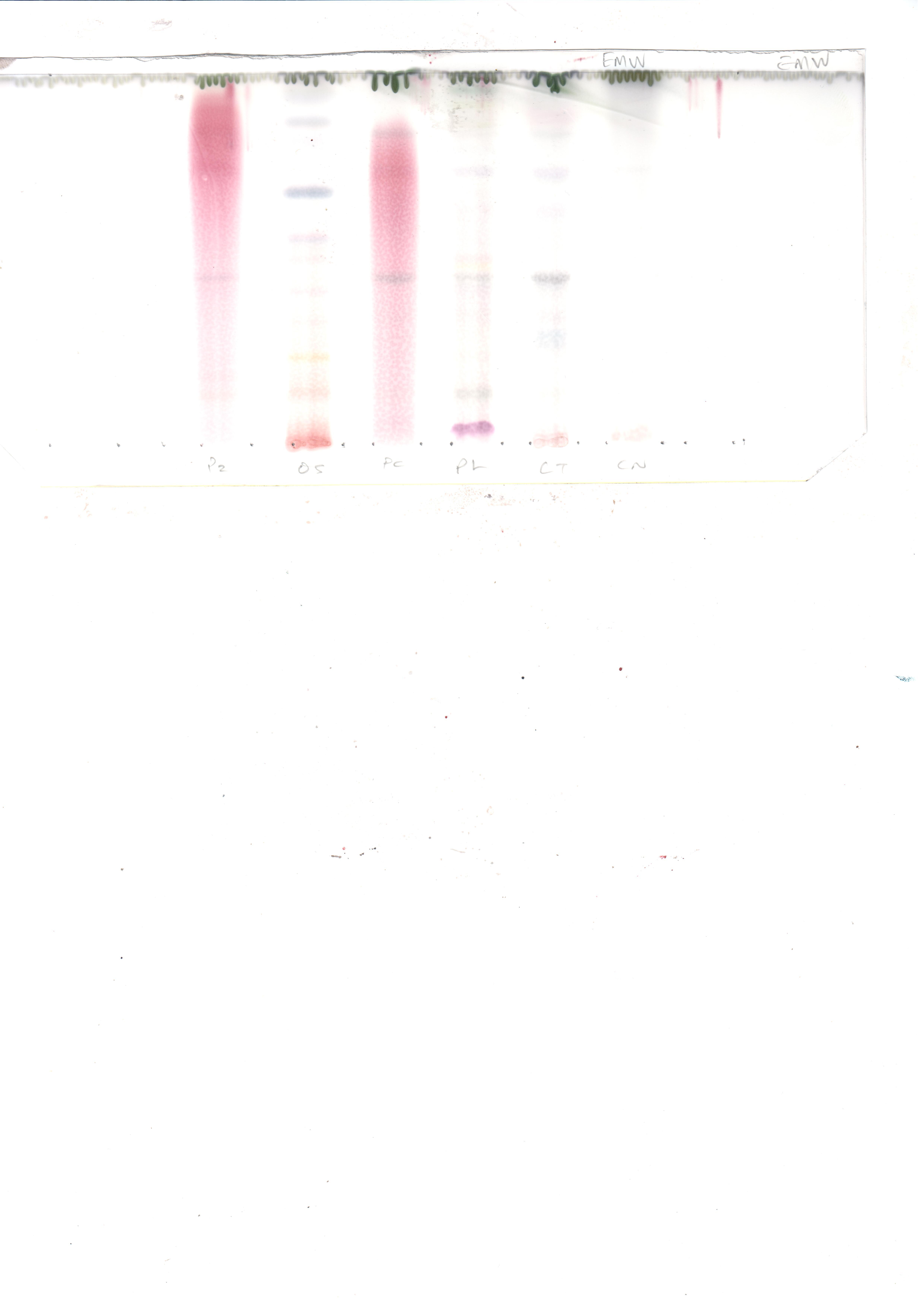 (CEF) and (3) ethyl acetate/methanol/water (EMW) sprayed with vanillin– sulphuric
