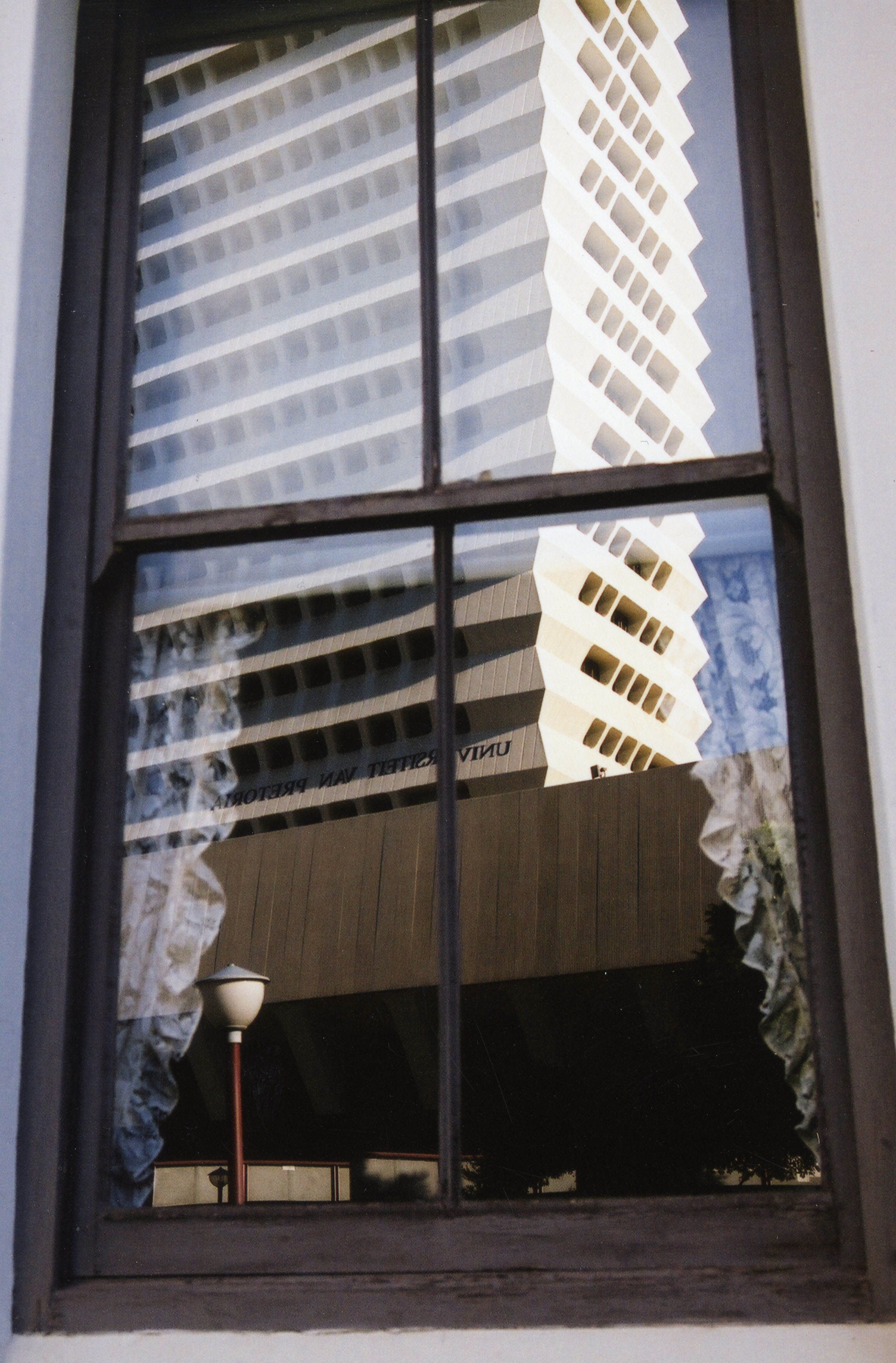 Reflection of the Human Sciences Building on a window, Hatfield Campus, University of Pretoria.