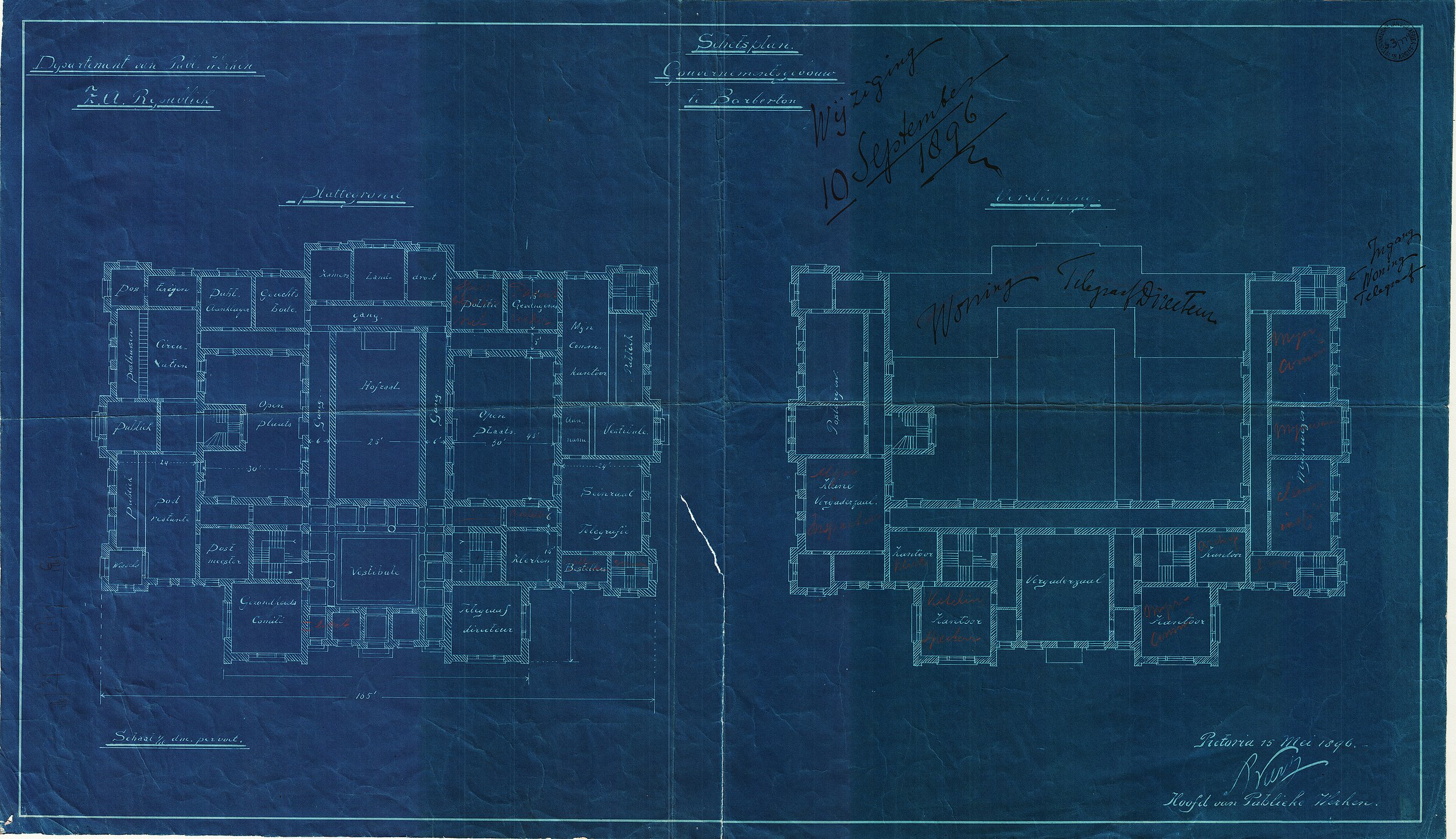 Note on schetsplan: "Wijzigingen 10 September 1896"