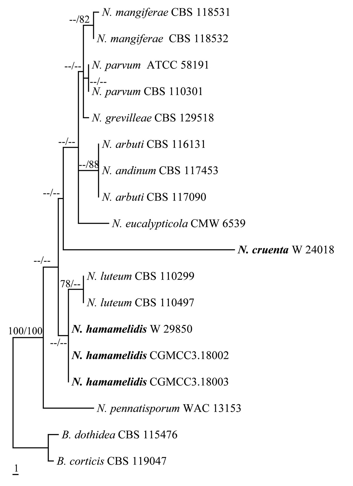 and morphological characters, Botryosphaeria cruenta and Botryosphaeria hamamelidis