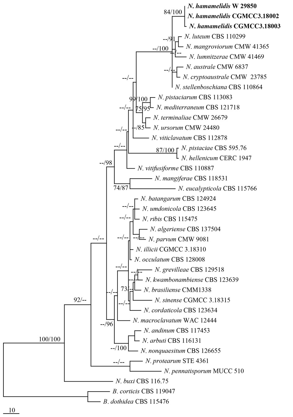 Botryosphaeria aesculi, Botryosphaeria dasylirii, and Botryosphaeria wisteriae are