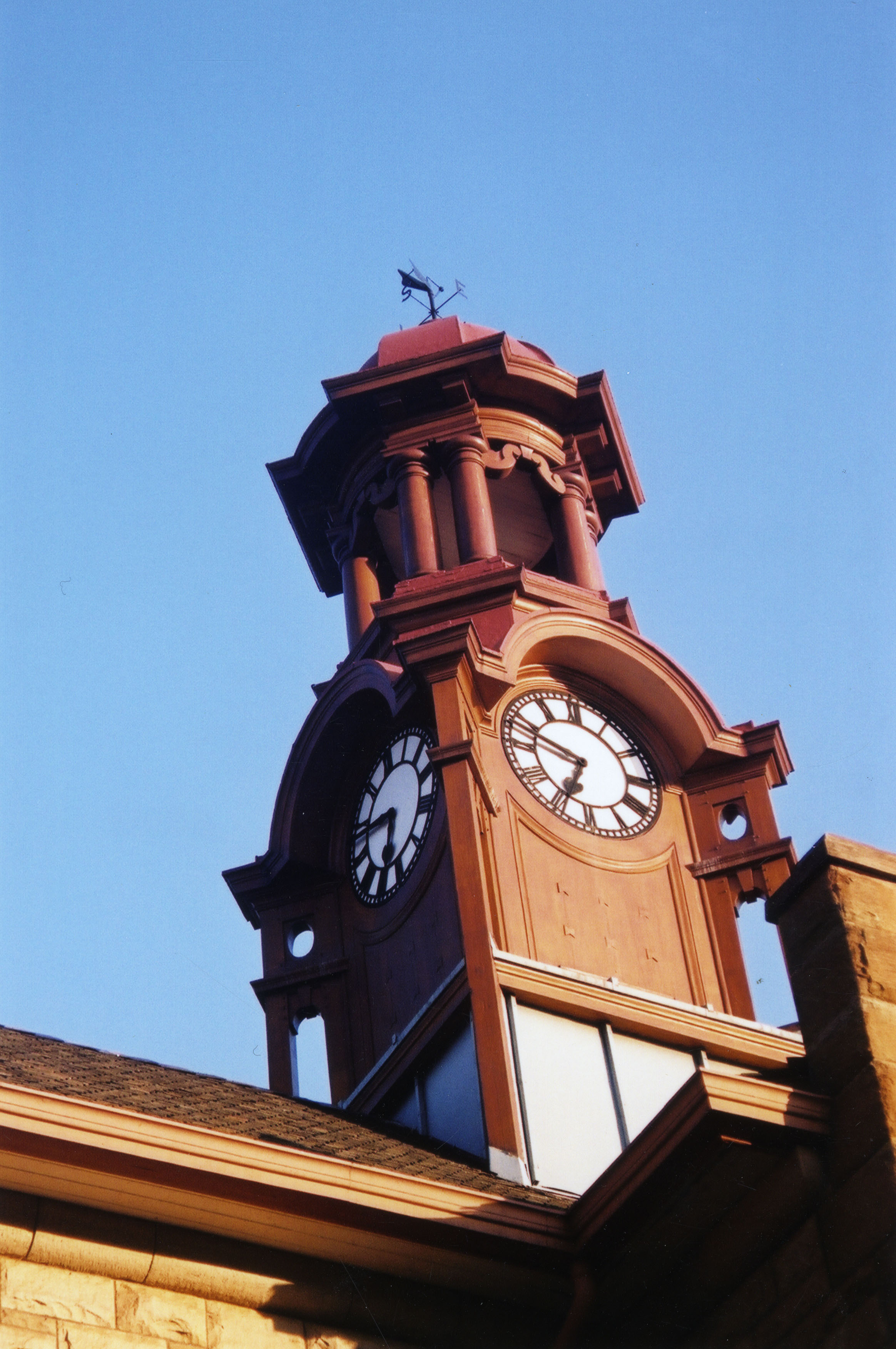 Low shot view of the clock tower on the Old Arts Building, Hatfield Campus, University of Pretoria.