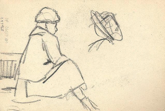 | dc.description | Charcoal drawing of two small bridges over a river with a large building to the right and three trees to the left, signed at the bottom. On the back is the incomplete sketch of a woman sitting on a bench. | en |