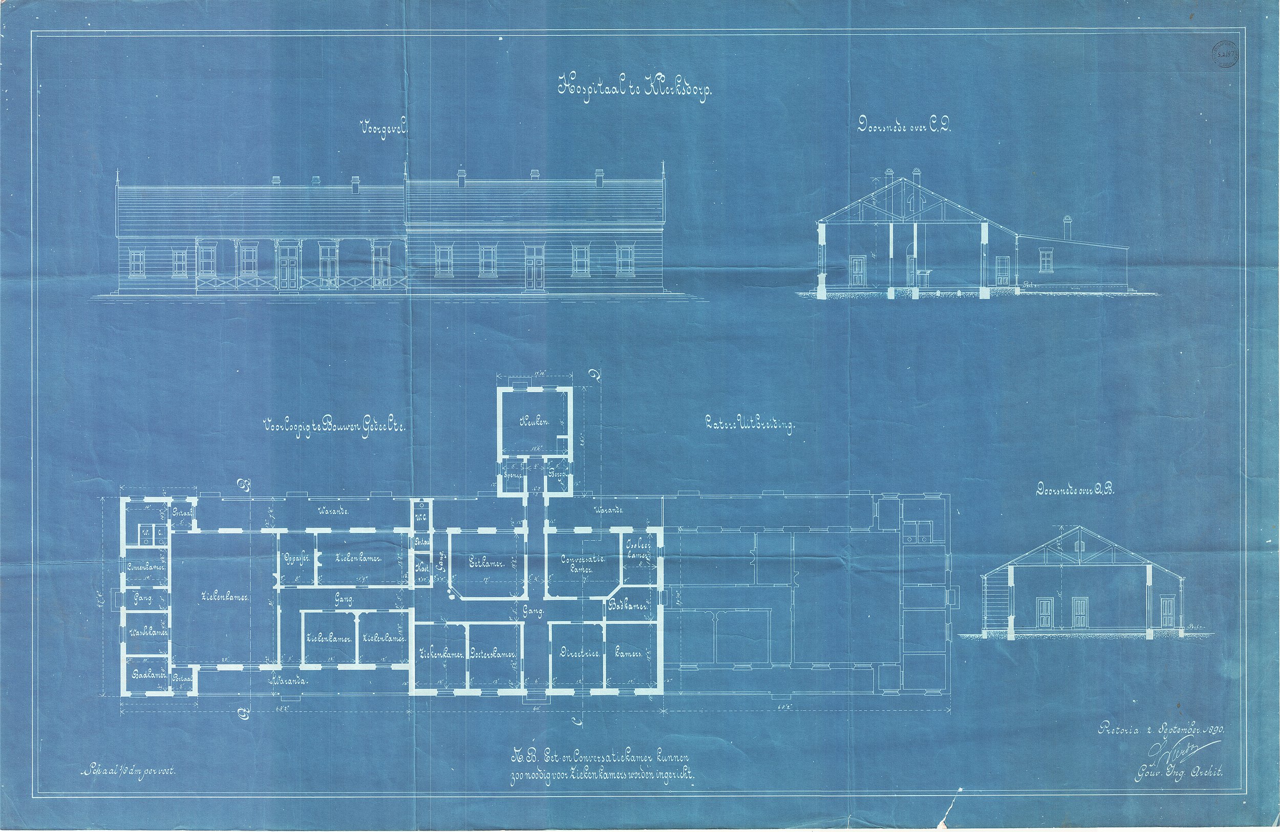 Digitised version of National Archive file S.2/87. Drawings of the hospital, Klerksdorp, signed by "S.W. Wierda, Hoofd, Publieke Werken"