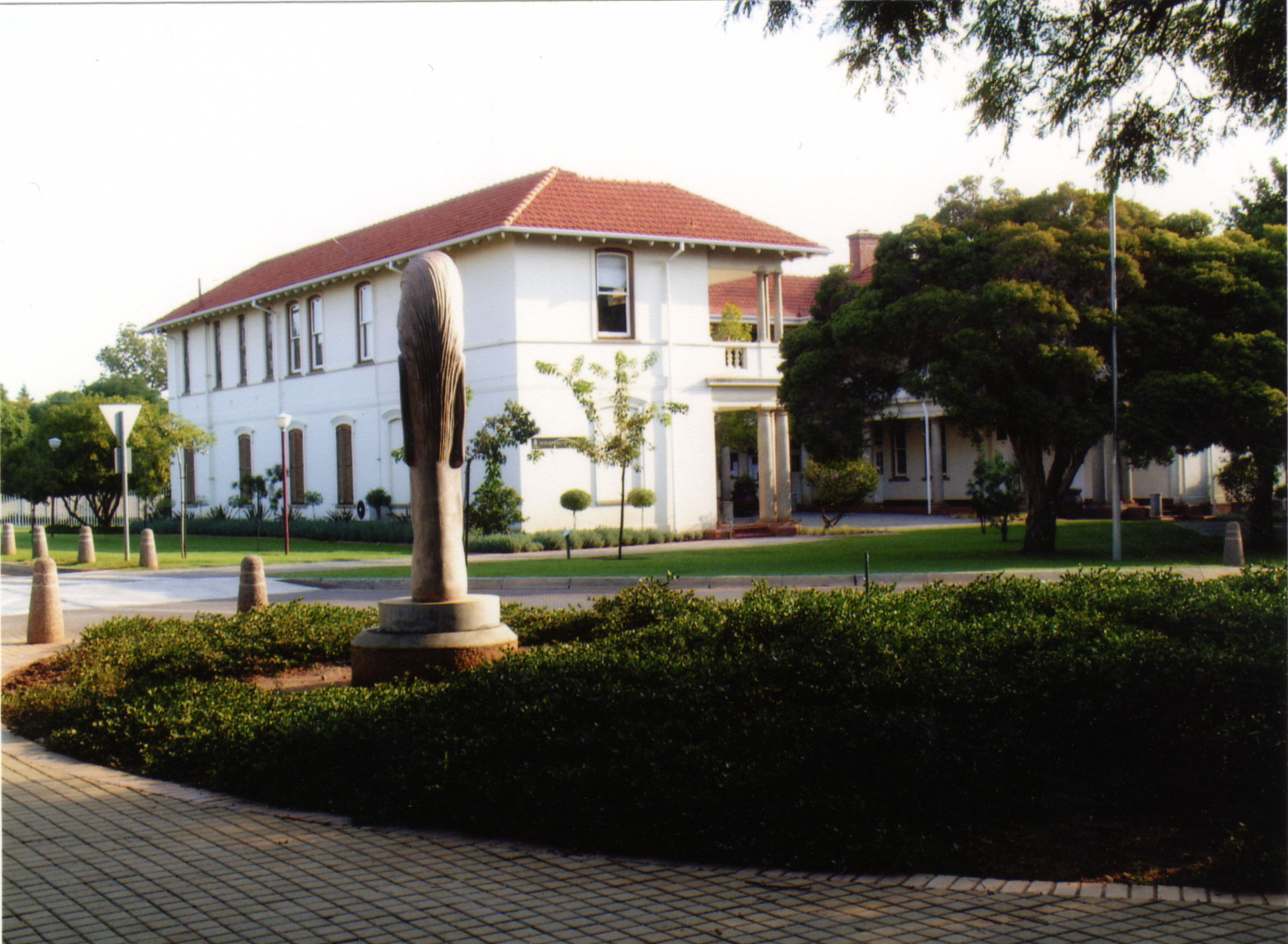 Corner view of the Drama Buildings taken passed Van Tilburg art piece, Hatfield Campus, University of Pretoria.