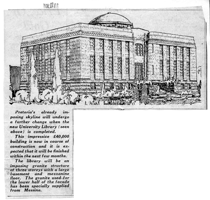 Pretoria's already imposing skyline will undergo a further change when the new University library is finished.