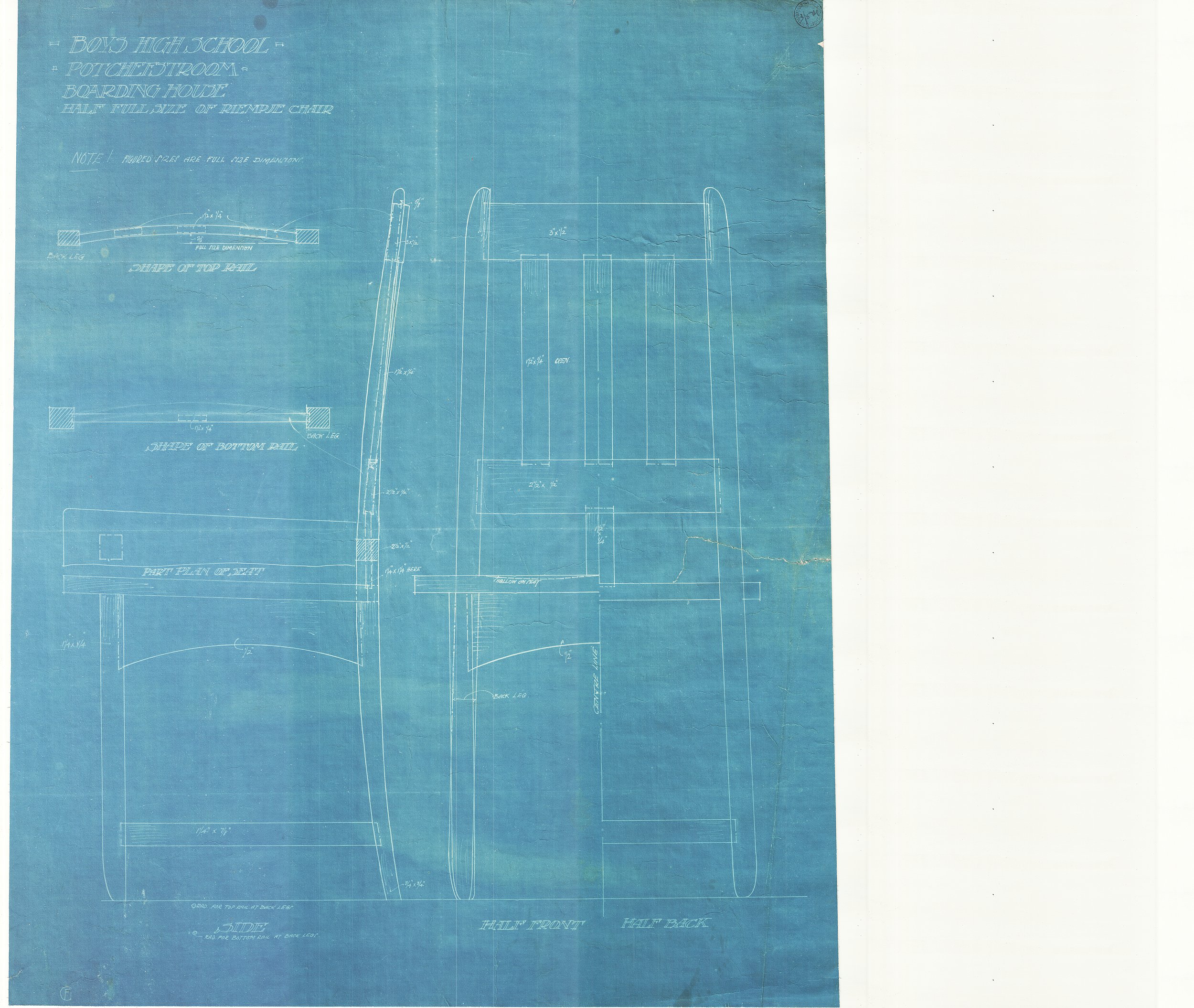 Digitised version of National Archive file S.3/874. Sketch of half full size riempje chair for Boarding House, Boys' High School, Potchefstroom