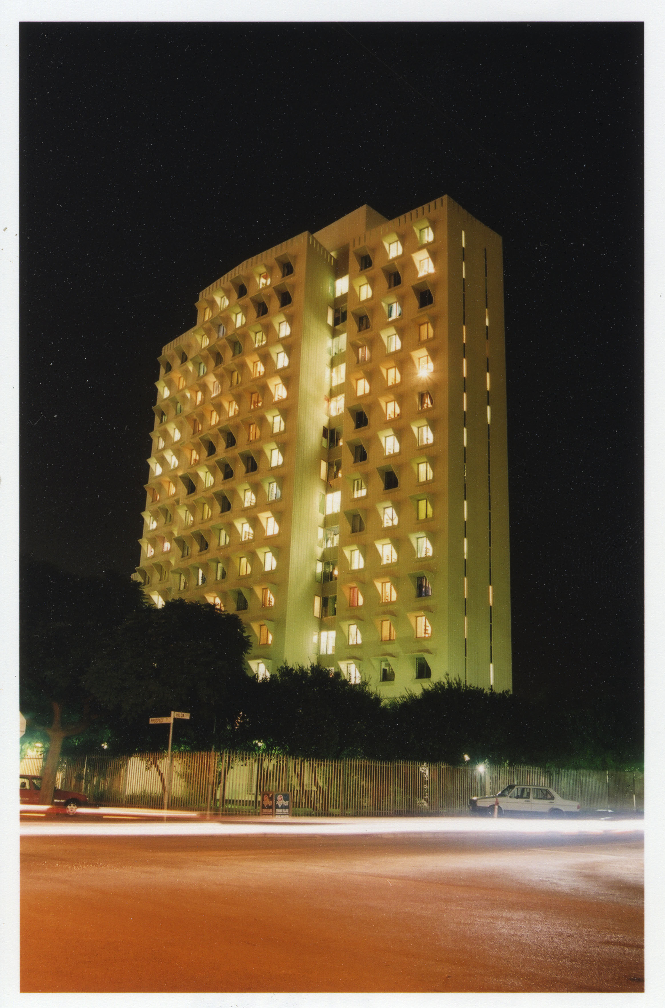 Distant side view of the Madelief Residence Building at night, Hatfield Campus, University of Pretoria.