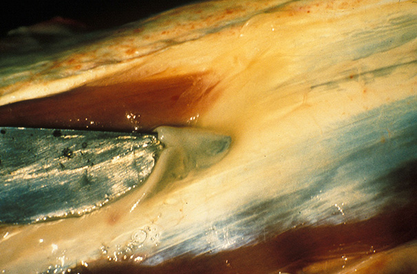 Bluetongue in a sheep showing intermuscular oedema of the neck muscles