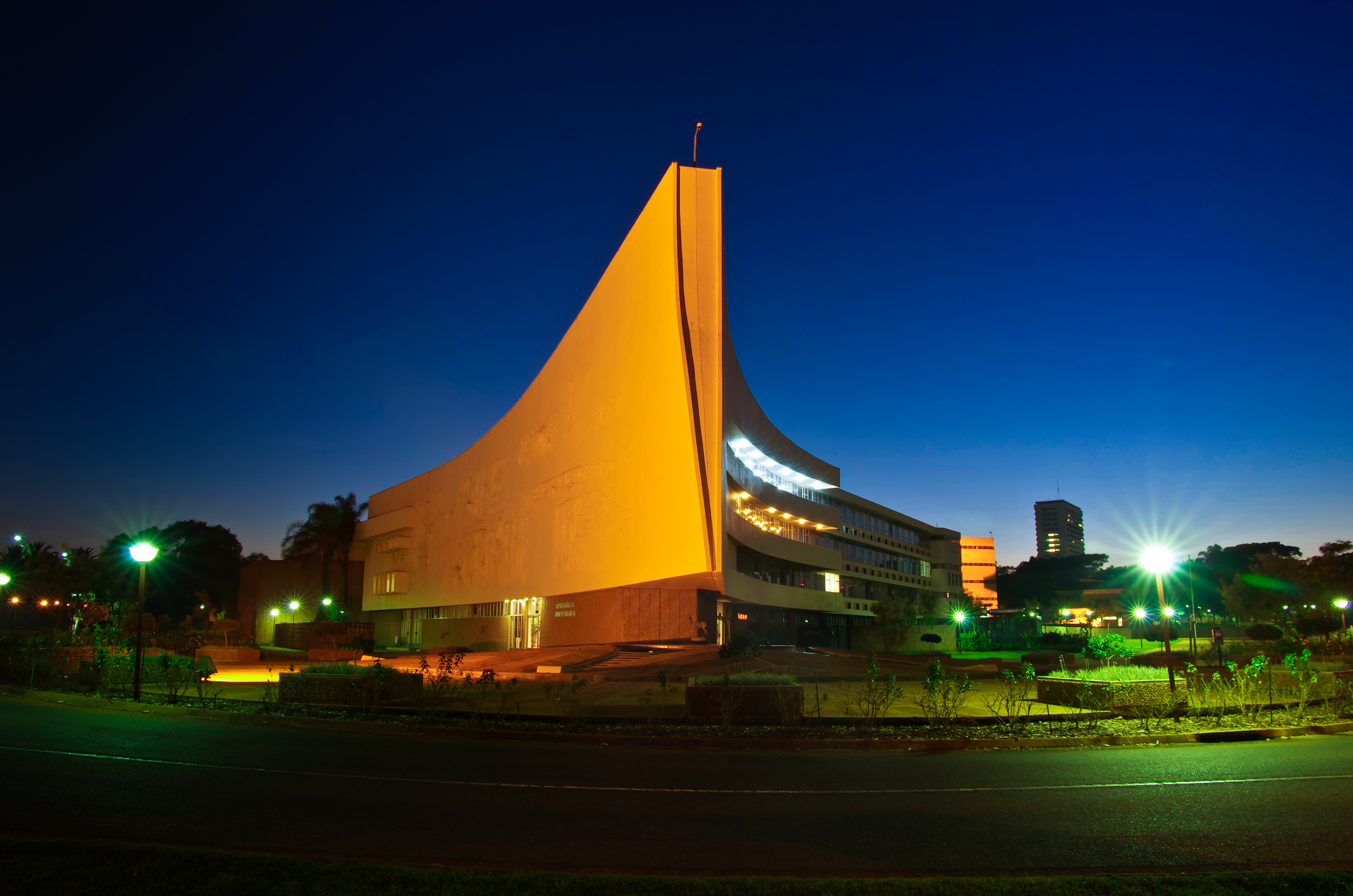 Distant view of the Administration Building taken at night, Hatfield Campus, University of Pretoria.