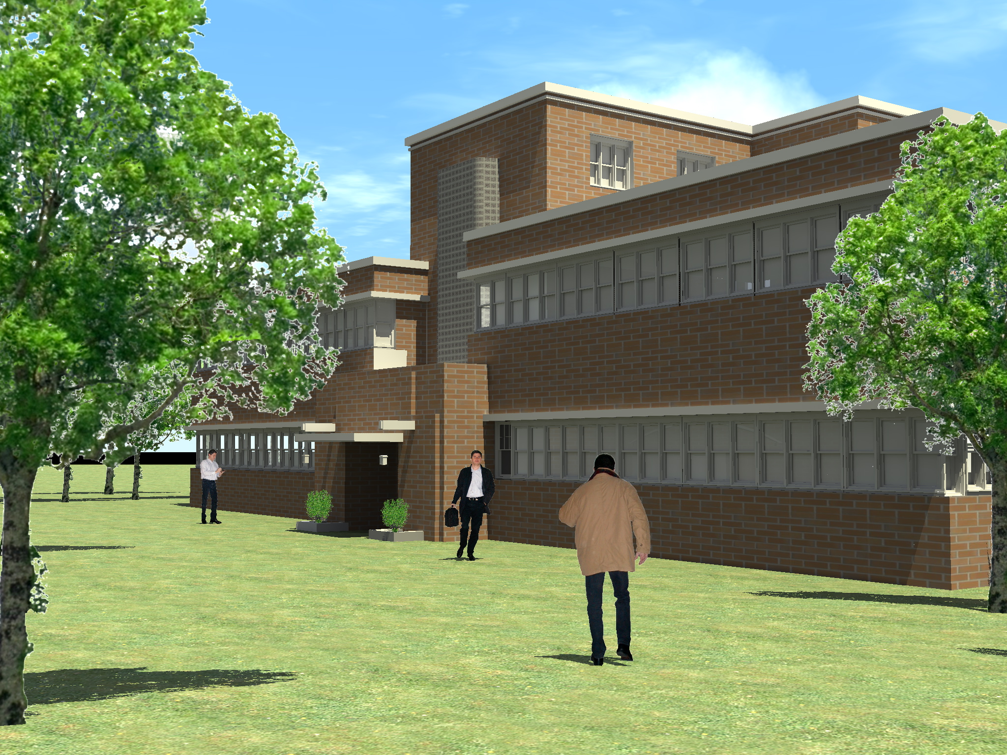 Image of virtually rendered coloured day-time model of the Botany building, size 2048x1536.