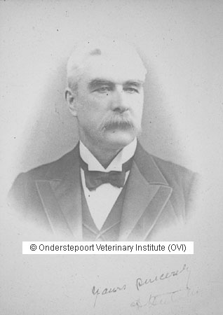 Dr. Duncan Hutcheon, MRCVS, qualified at the Royal Veterinary College (Royal Dick) in Edinburgh, Scotland in 1869. He came to the Cape Colony in 1880 to join the Colonial Service. An exceptional veterinarian in all respects and was confronted by many infectious and non infectious diseases. He considered that lamsiekte (botulism) in cattle could be prevented by feeding crushed bones as it was caused by a phosphate deficiency. Many years later (and after the deaths of probably millions of cattle due to lamsiekte) he was proved correct.