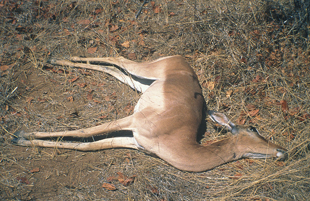 Anthrax in impala : note extension of the legs and backward flexion of neck