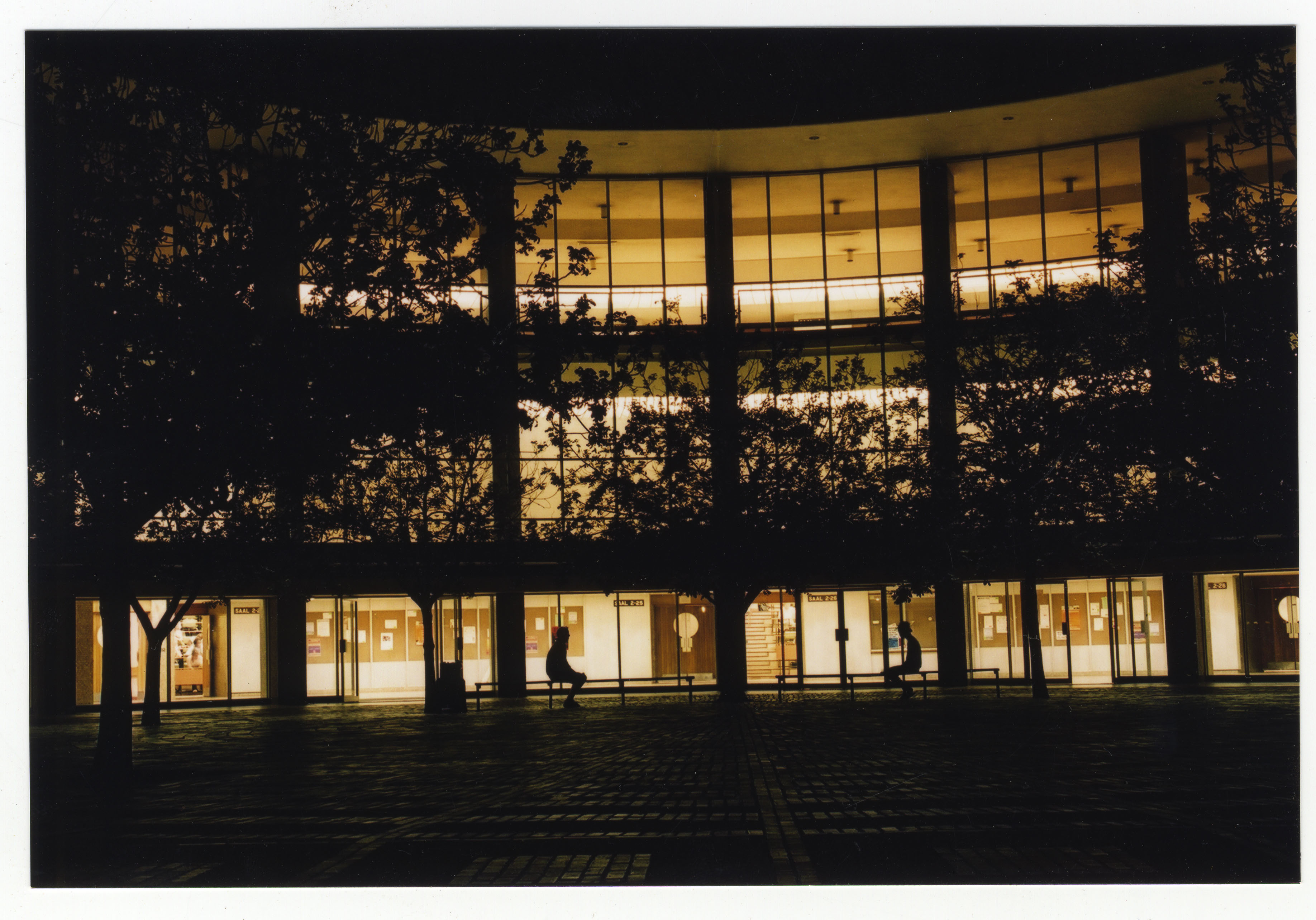 Front view of the Information Technology Building during the evening with the lights on, Hatfield Campus, University of Pretoria.