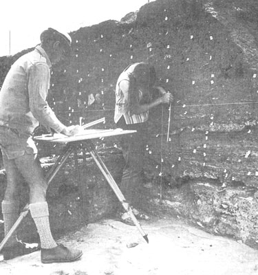Recording Profile B3-A3 in Excavation MK 1 on Mapungubwe Hill in 1973. The excavators, from left to right: Andrie Meyer and Edwin Hanisch.