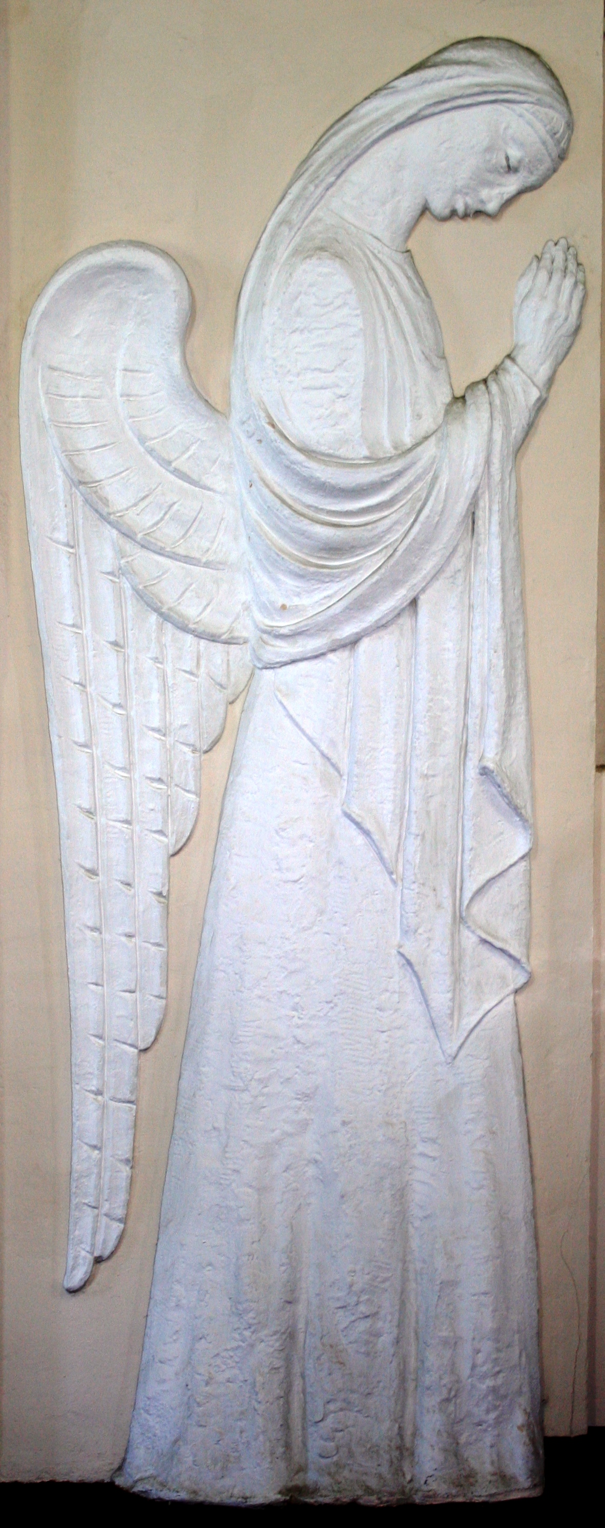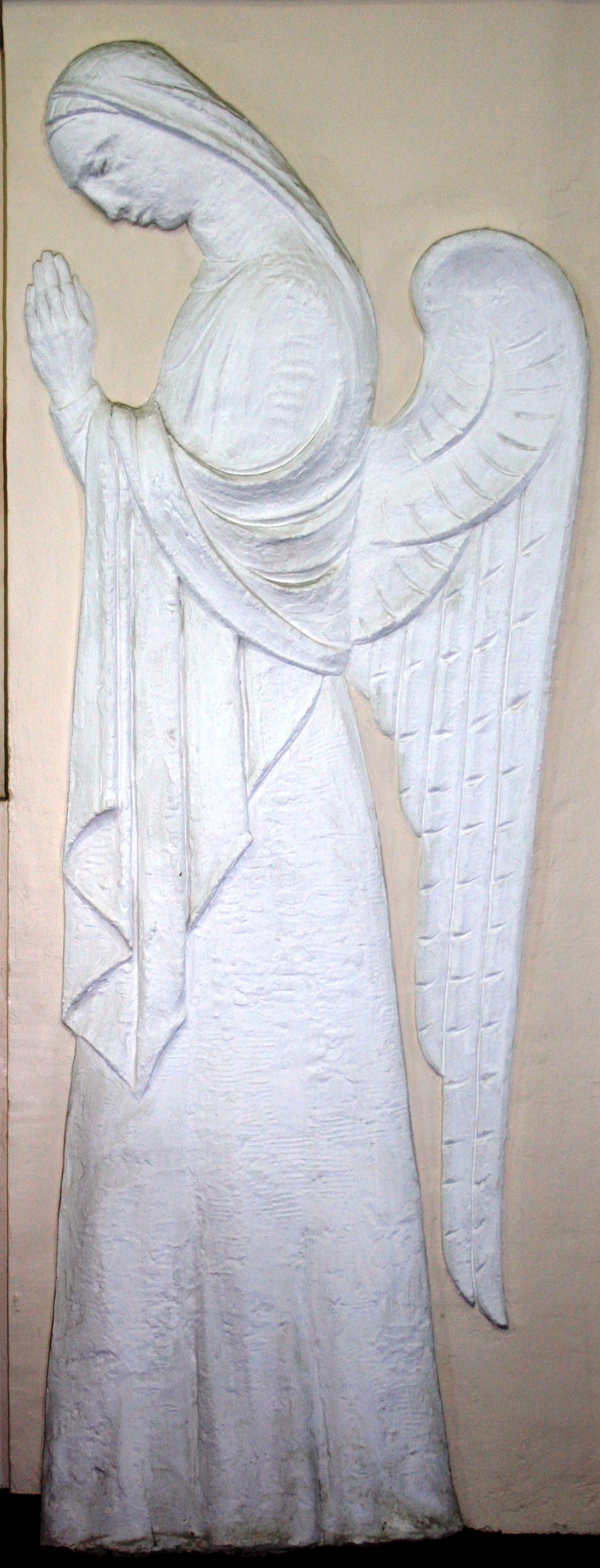 In 1945 a group from the camp was sent to help with the building of the Roman Catholic Church in Middelburg. This is a set with the angels facing inwards towards each other.