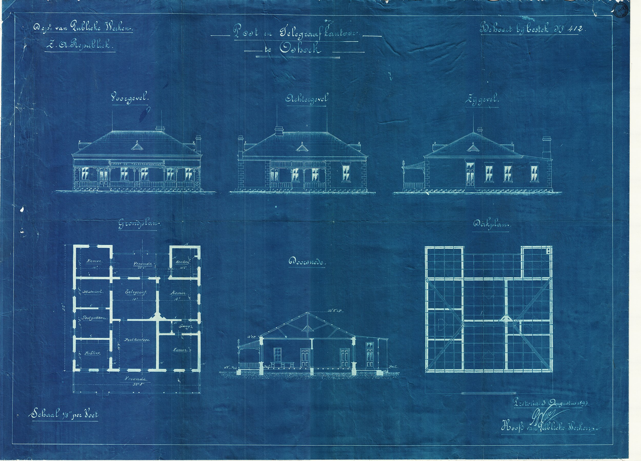 | dc.description | Digitised version of National Archive file S.3/959. Drawings: "Voorgevel, Achtergevel, Zijgevel, Grondplan, Doorsnede, Dakplan" (Front Gable, Back Gable, Side Gable, Floor Plan, Section, Roof Plan), Post and Telegraph Office, Oshoek. Signed by "S.W. Wierda, Hoofd van Publ.Werken" | en |