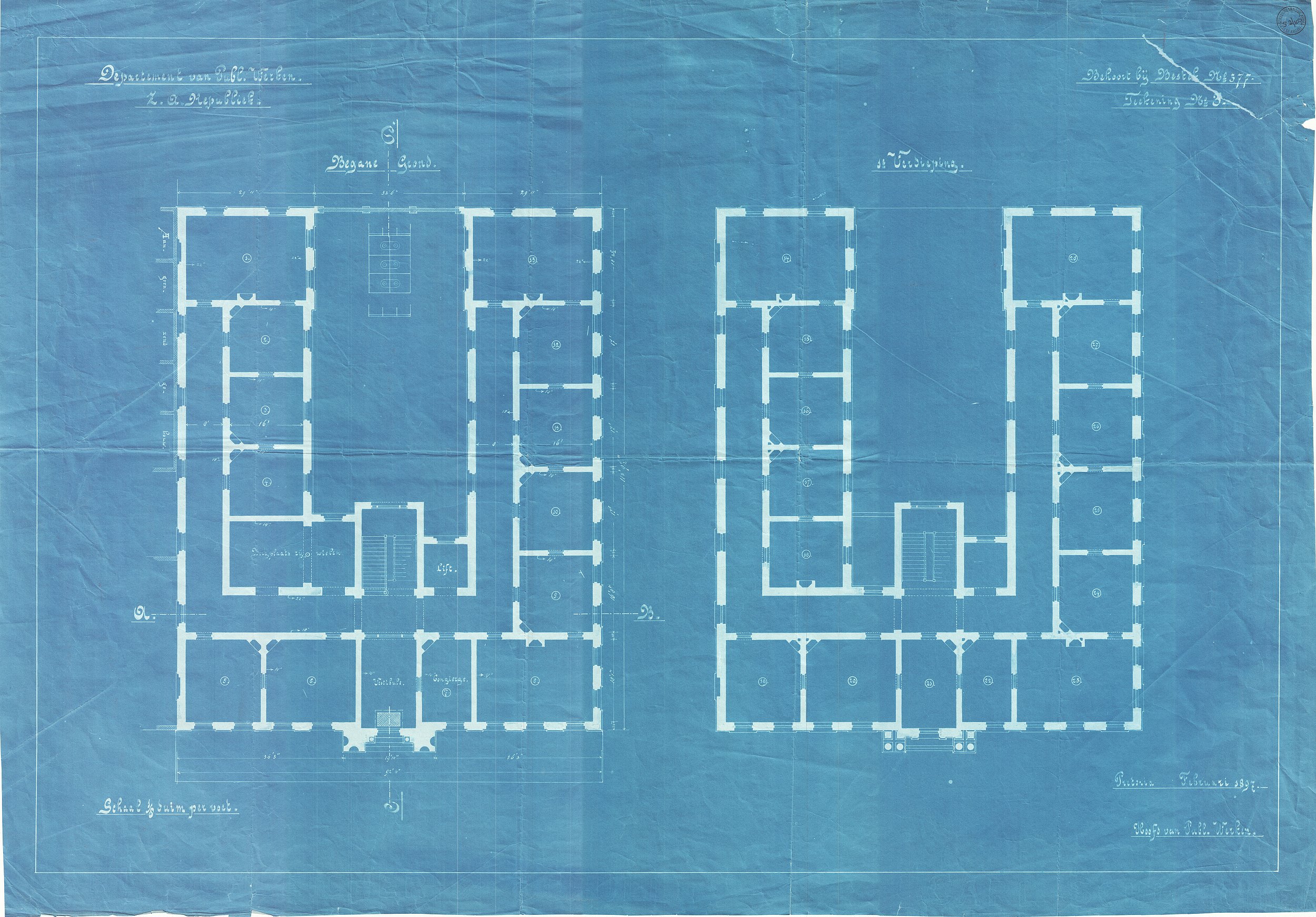 Note on plan: "Behoort bij Bestek no 377, Teekening no 3"