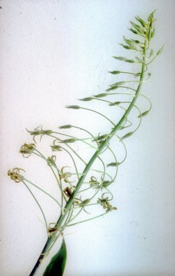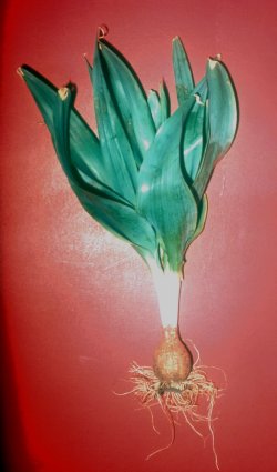 BOTANICAL DESCRIPTION: General: A perennial white underground bulb of up to 15 cm in diameter. Leaves: Three to sixteen large, broad, grey-green, leathery leaves are arranged in a basal rosette. They die down in winter and will appear immediately after spring rains to grow very quickly to a height of ± 15 cm. Flowers: Brownish-red to yellow-green flowers are borne on a large erect inflorescence (± 1 m high), which usually develops after the leaves. Spring - summer. Fruit: The fruit is a three-segmented capsule, which contains flat, round, black seeds, which are distributed by wind.