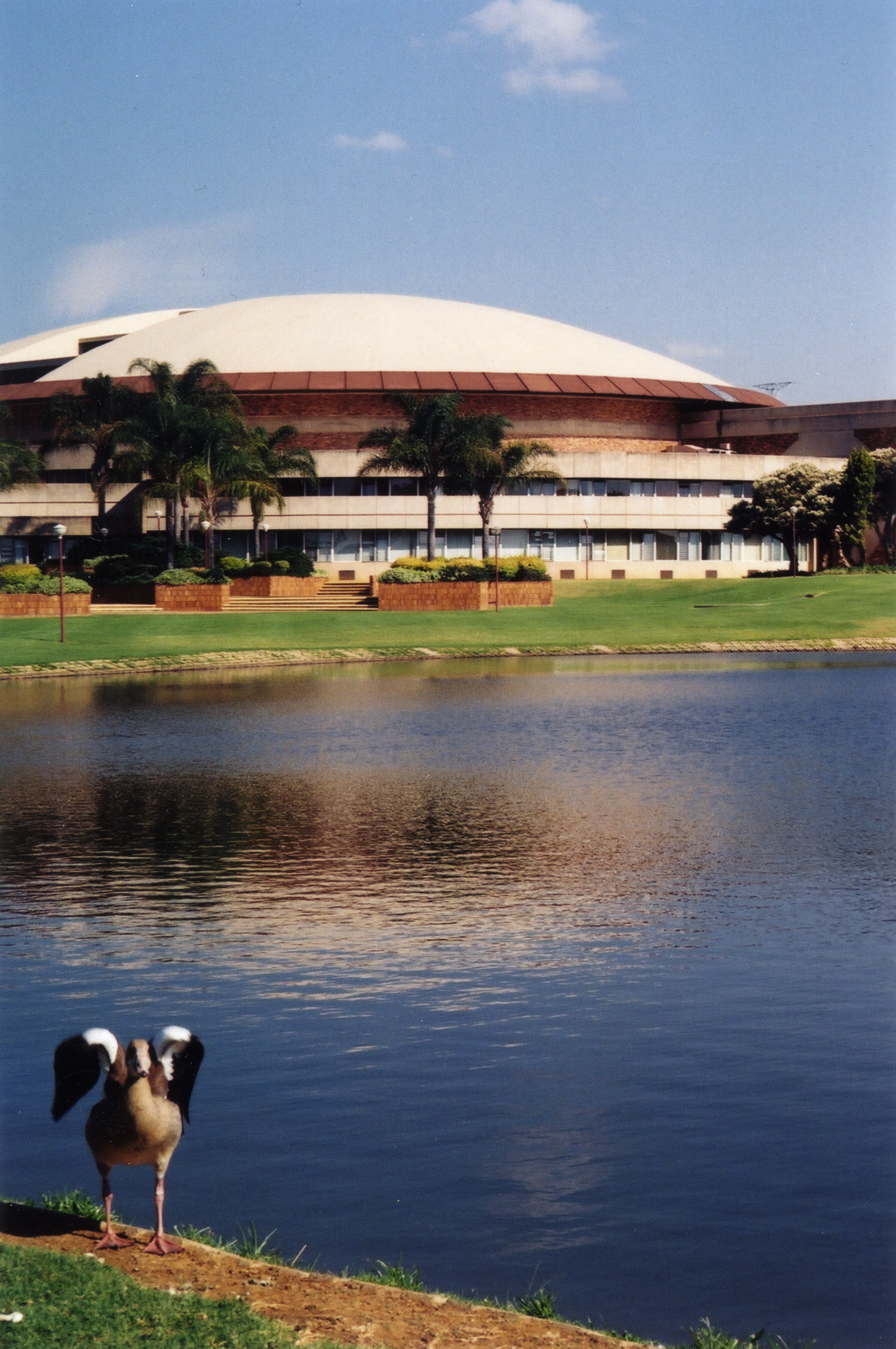 Distant side view of the Indoor Sports Centre, LC de Villiers, University of Pretoria.