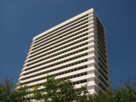 Bottom view of the Human Sciences Building, Hatfield Campus, University of Pretoria.