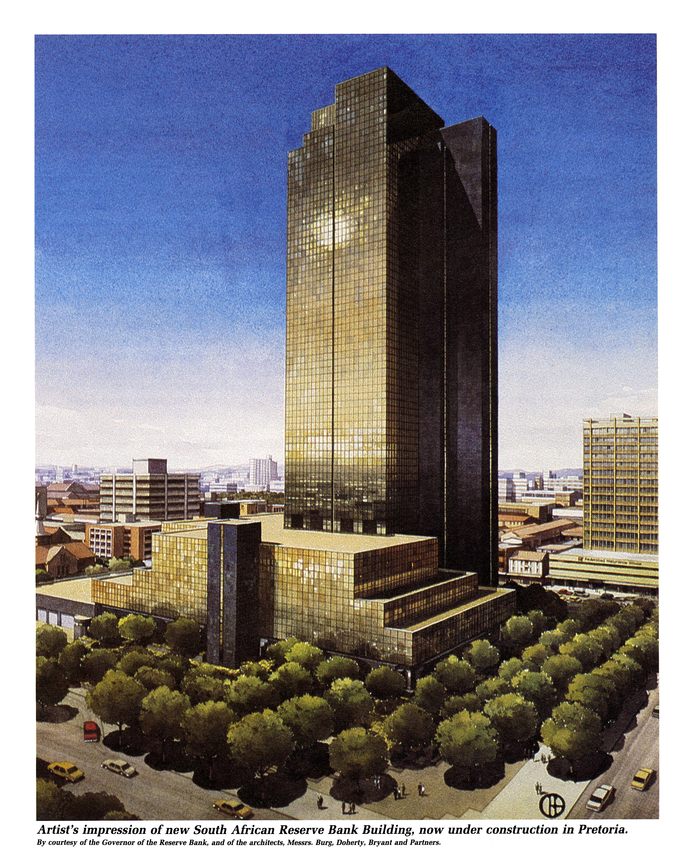 6 photographs illustrating buildings that have housed the South African Reserve Bank from the beginning till the present.