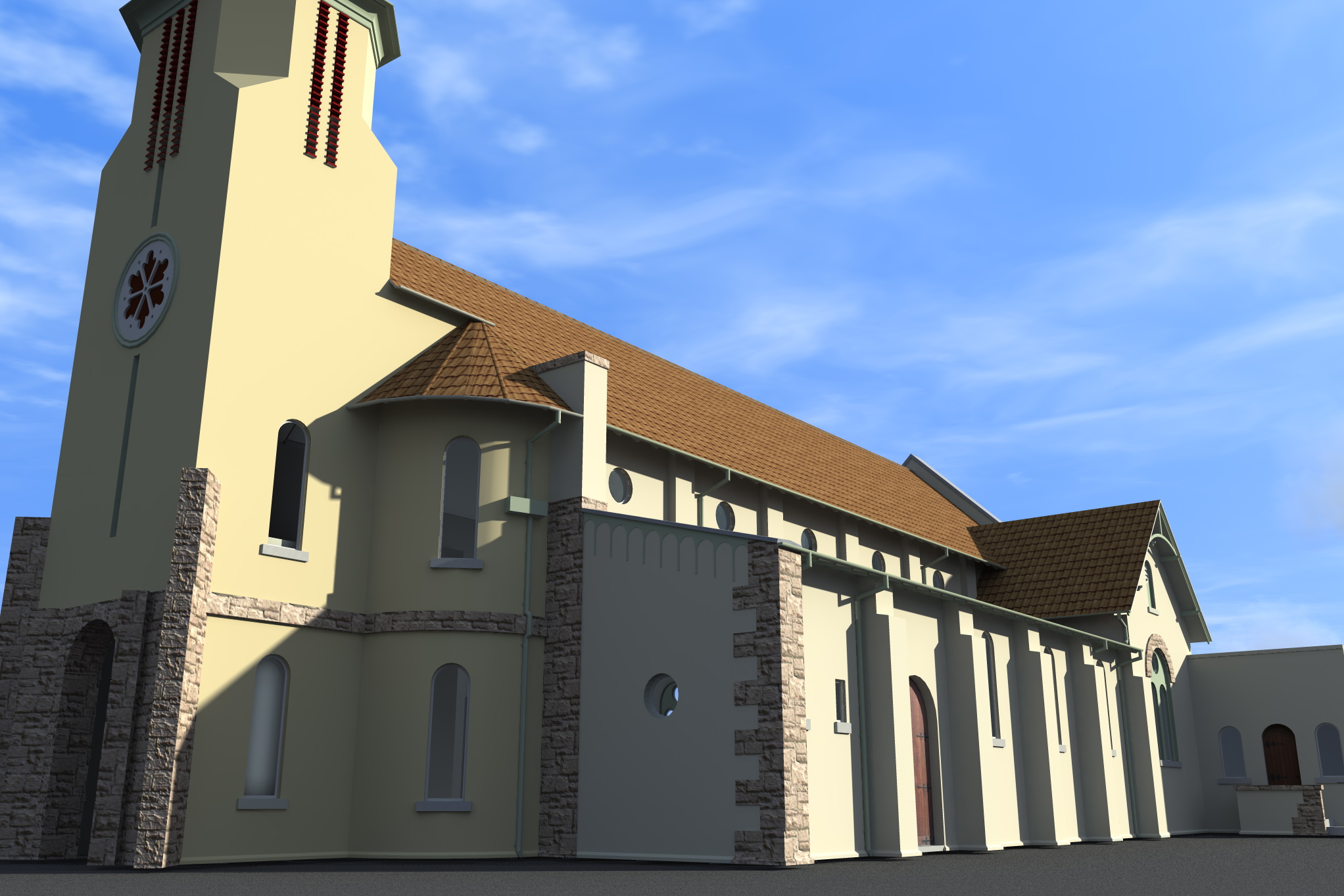 Virtually rendered model of the Chapel during day-time, size 2044X1363.