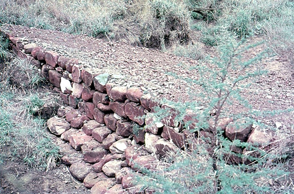 Rock-packed gabion in gully, Hluhluwe Game Reserve, KwaZulu-Natal, South Africa - August 1971