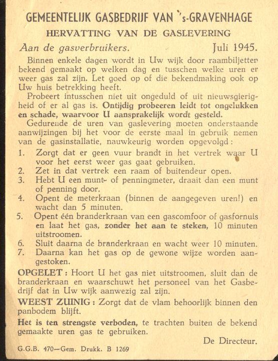 Gemeentelijk Gasbedrijf van 's-Gravenhage : hervatting van de gaslevering