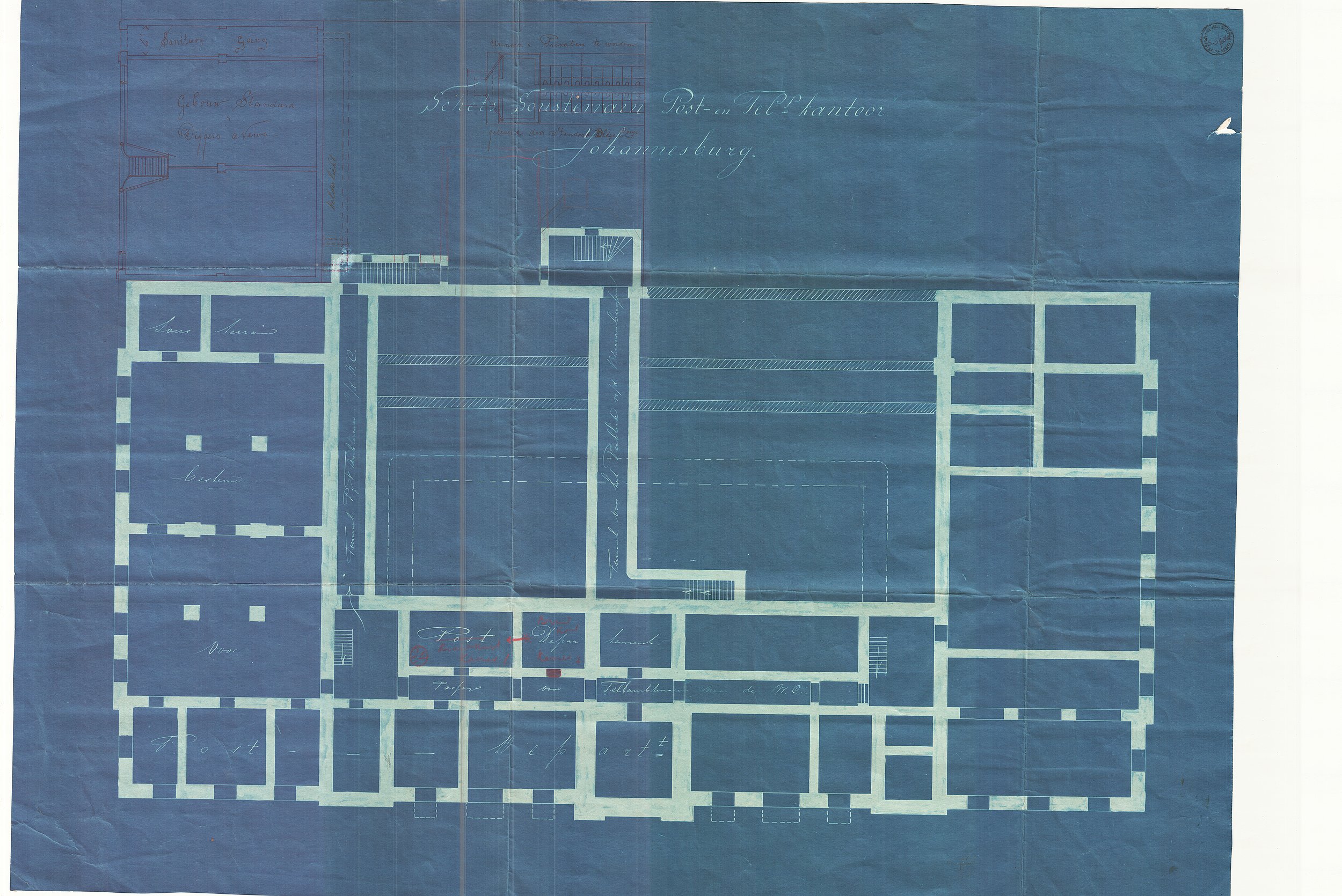 Digitised version of National Archive file S.3/636. Sketch plan, Johannesburg Post and Telegraph Office