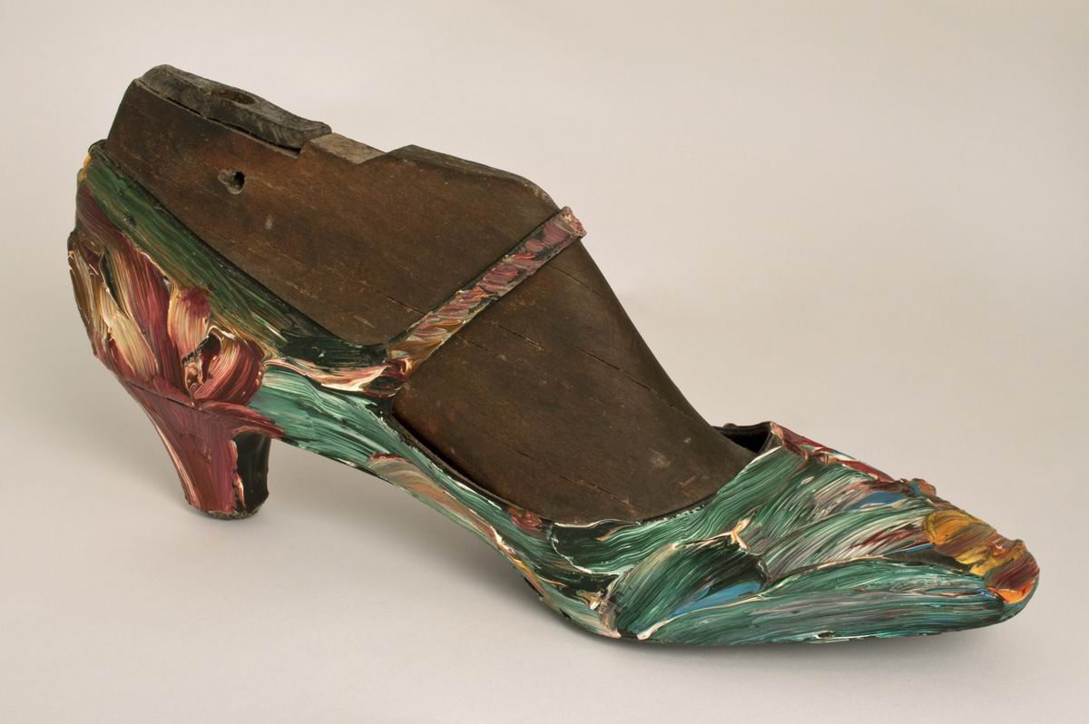 was to wear these particular shoes to the opening of his exhibition. This unusual work suggests a hint of his avant-garde