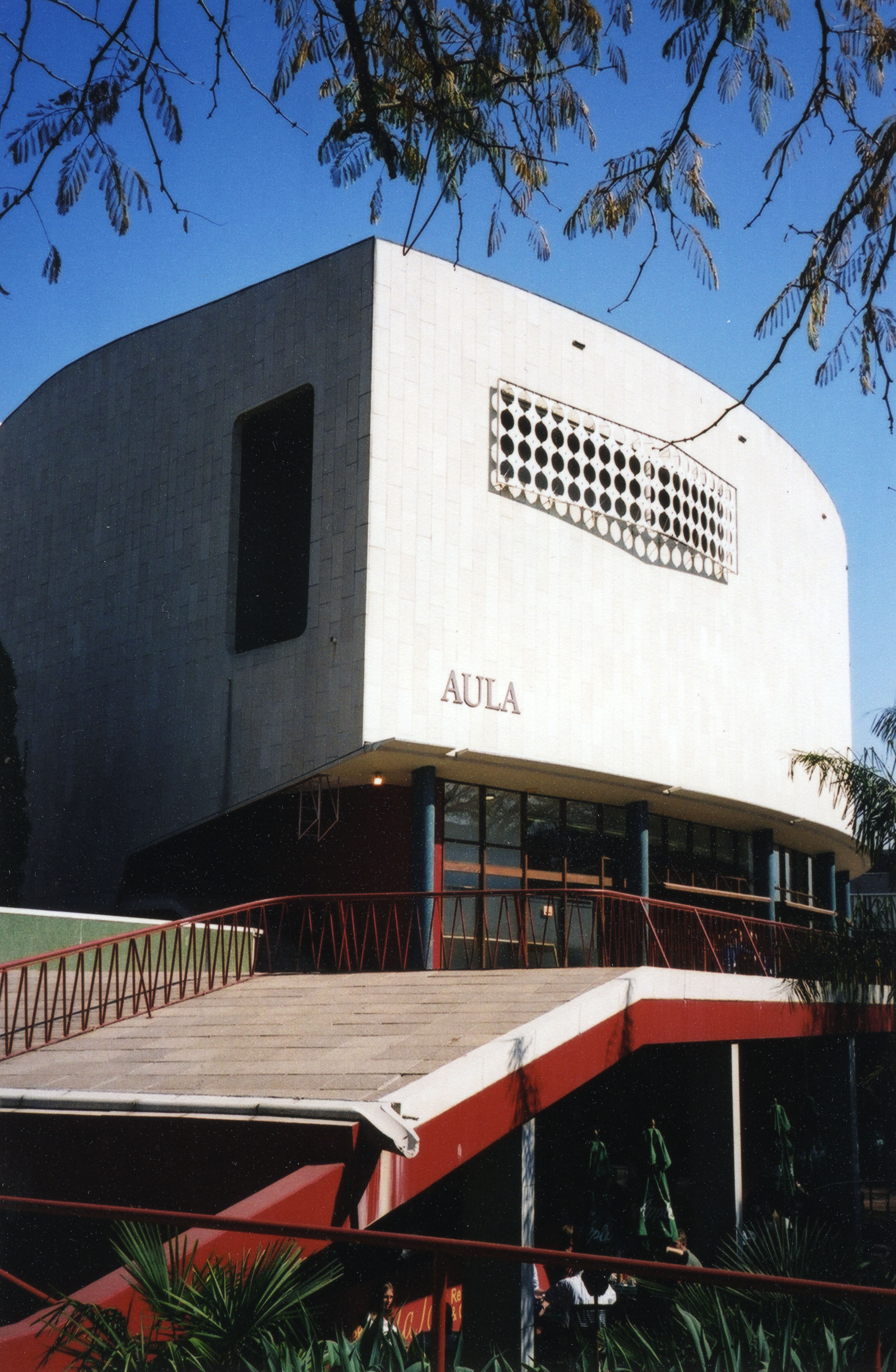 Side view of the Aula Building taken from the ground upwards, Hatfield Campus, University of Pretoria.