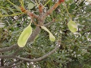 | dc.description.abstract | Terminalia sericea: (Silver terminalia, Vaalboom) Distribution: Occuring almost exclusively on sandy soils. Locally very common. Can be dominant or codominant where it grows. Botanical description: General: A small to medium sized well-shaped tree usually 4 to 6 m in height; but sometimes reaching 10 m. The purplish-black bark peels to reveal the light brown inner bark. Leaves: Clustered towards the ends of the slender branchlets. Pale green, covered with silky hairs which give it a characteristic sheen - especially the young leaves. Mature leaves sparsely hairy. Flowers: Small, pale greenish-white in axillary spikes. Unpleasantly scented. Late spring. Fruit: Flat, indehiscent. Broadly elliptic with a round notched tip. Contains one seed surrounded by a flat wing. Pink to rose-red when mature, drying to russet-brown. | en |