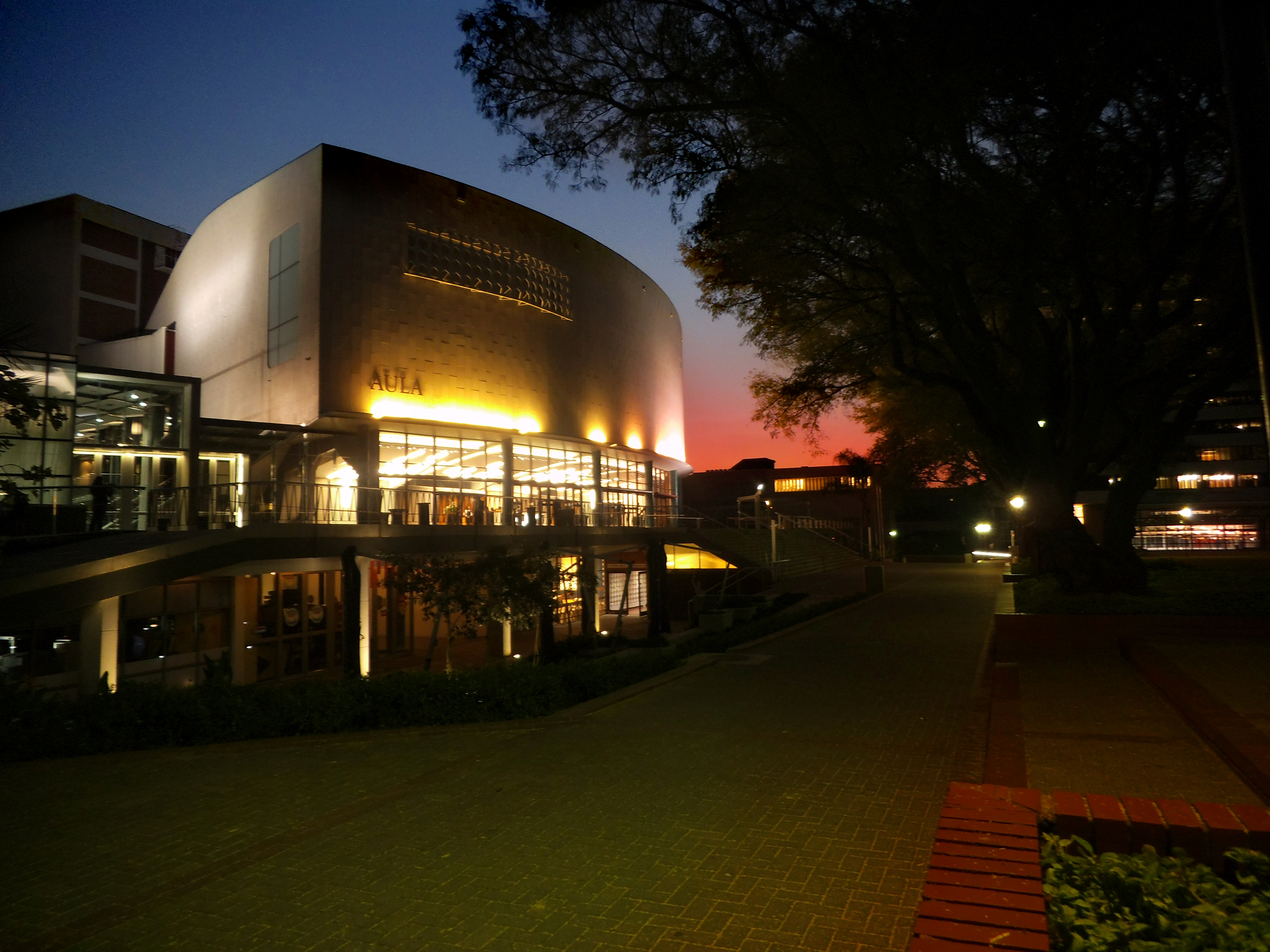 Front-evening view of the Aula Building, Hatfield Campus, University of Pretoria.