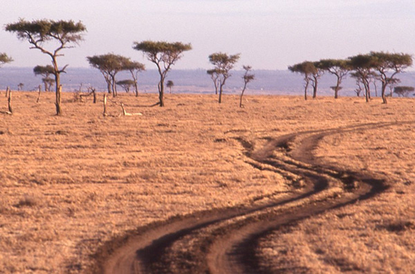 Tourist road impact on habitat, Maasai Mara, Kenya - October 1993