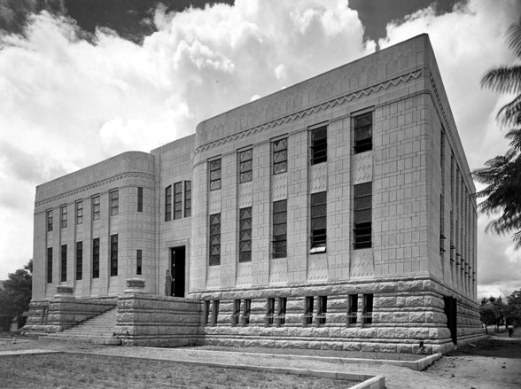 | dc.description.abstract | Photos [1938?] of the completed new library building, University of Pretoria, designed by South African architect, Gerard Moerdijk. | en |