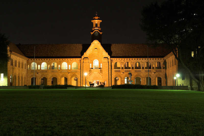 Coloured digital photo of Old Arts Building at night. 800x533 pixels. Size: 117 KB.
