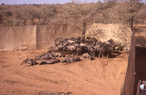 Blue wildebeest in closed capture boma, South Africa