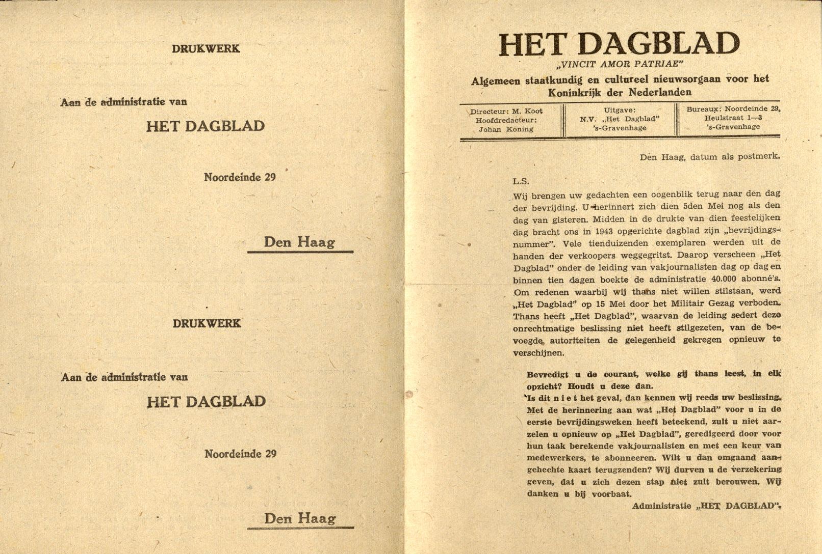 Three-page advertisement and subscription form of Het Dagbald during the Second World War