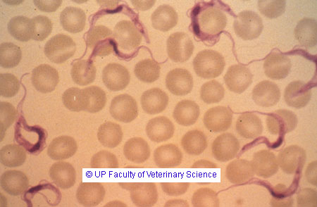 Light micrographs of Trypanosoma brucei in a stained blood smear