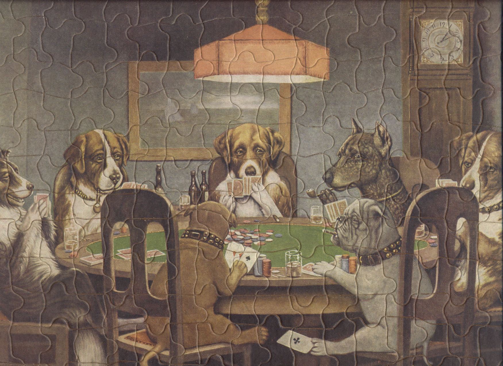 Picture of seven dogs playing poker. Second World War satire.