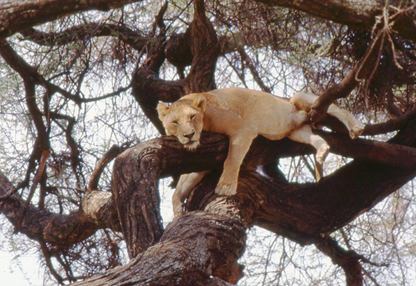 Lions may climb into trees to escape from biting insects, Lake Manyara National Park, Tanzania - July 1996