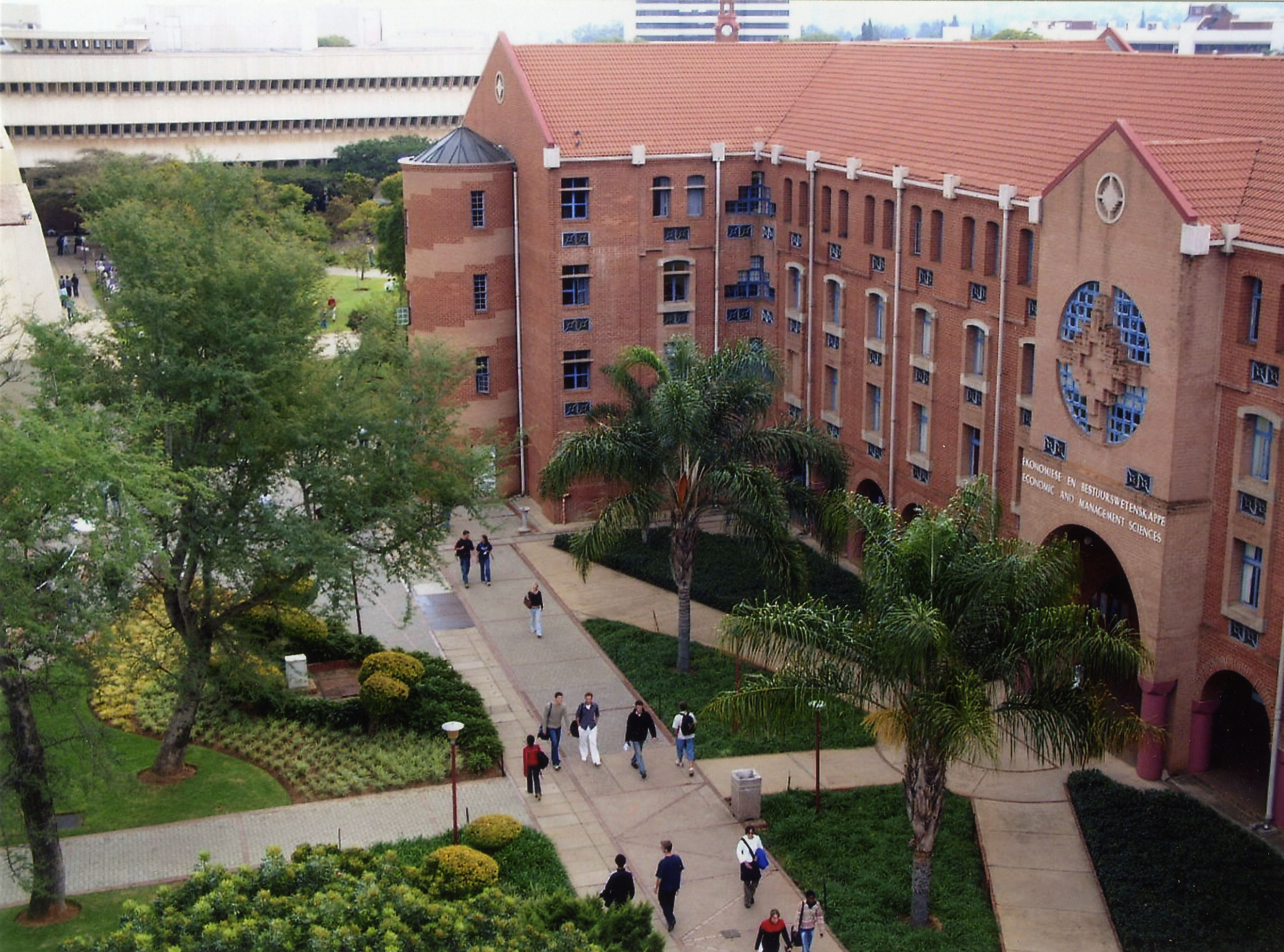 Aerial side view of the Economic and Management Science Building, Hatfield Campus, University of Pretoria.