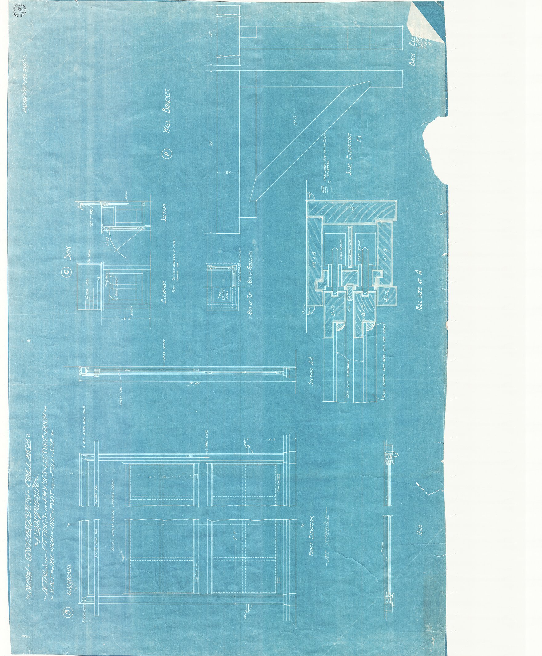 Digitised version of National Archive File no 2/830: copy of a plan of the fittings in the Physics lecture room, New University College [Transvaal University College (T.U.C.)], Pretoria.