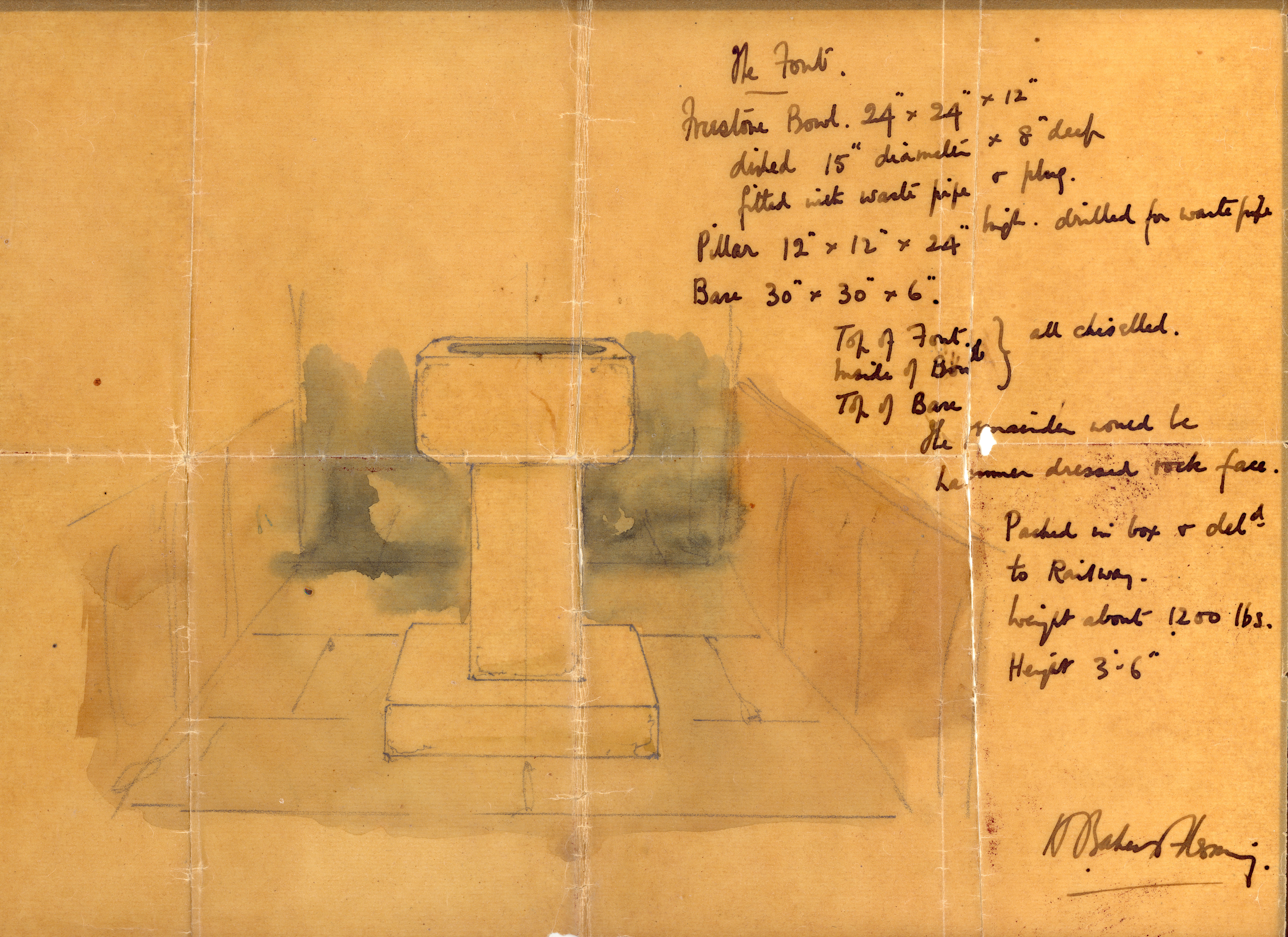 Baker, Herbert, Sir, Church of St. John the Baptist, 24 Rivers, Twenty-Four Rivers, Stone font, Sketch plan, Peacock, M.K.